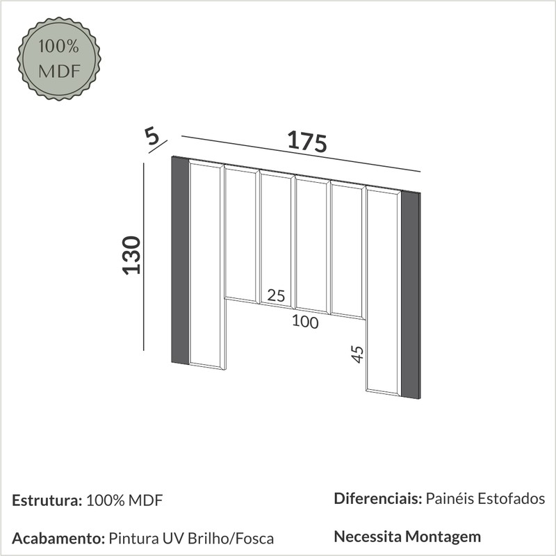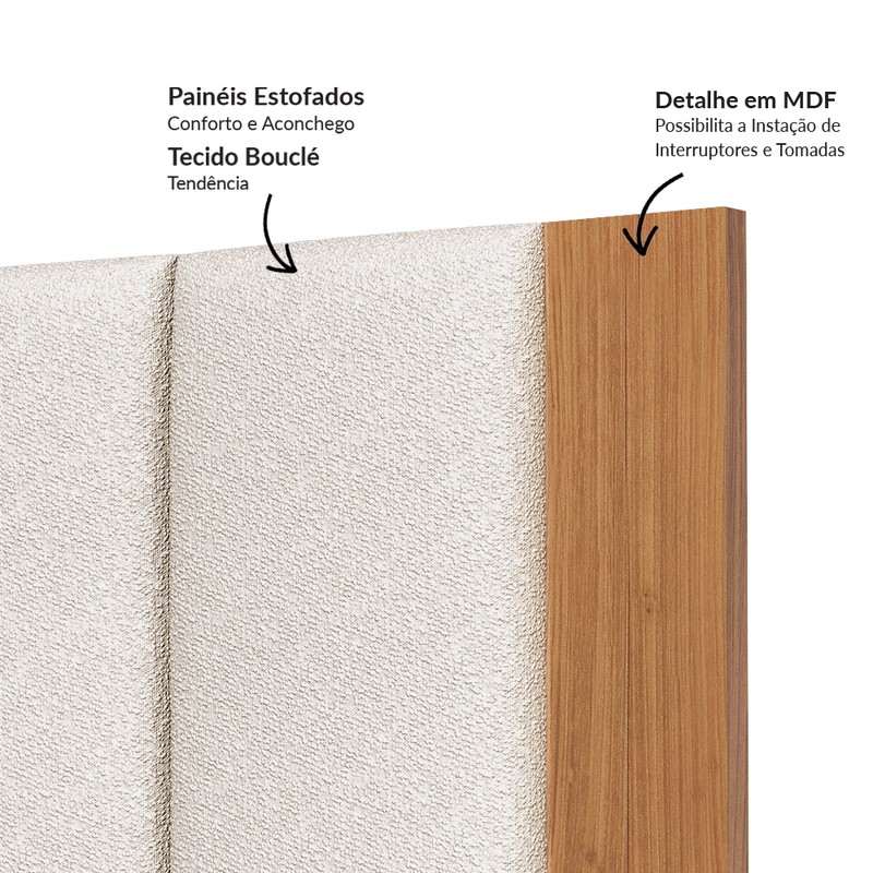 Formas suaves, toque macio e matérias primas de alta qualidade, fazem com que esse produto seja um acessório confortável, bonito e durável para a sua cama. O TW194 conta com espumas D23, que isolam sua cama da parede nas noites frias e úmidas de inverno. As molduras em MDF permitem recortes para a instalação de interruptores e tomadas. Seu design é atemporal e esbanja modernidade e aconchego em qualquer dormitório.