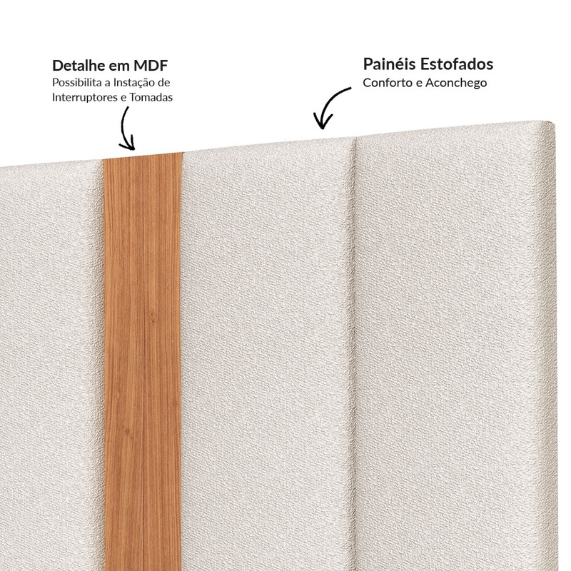 Formas suaves, toque macio e matérias primas de alta qualidade, fazem com que esse produto seja um acessório confortável, bonito e durável para a sua cama. O TW196 conta com espumas D23, que isolam sua cama da parede nas noites frias e úmidas de inverno. As molduras em MDF permitem recortes para a instalação de interruptores e tomadas. Seu design é atemporal e esbanja modernidade e aconchego em qualquer dormitório.