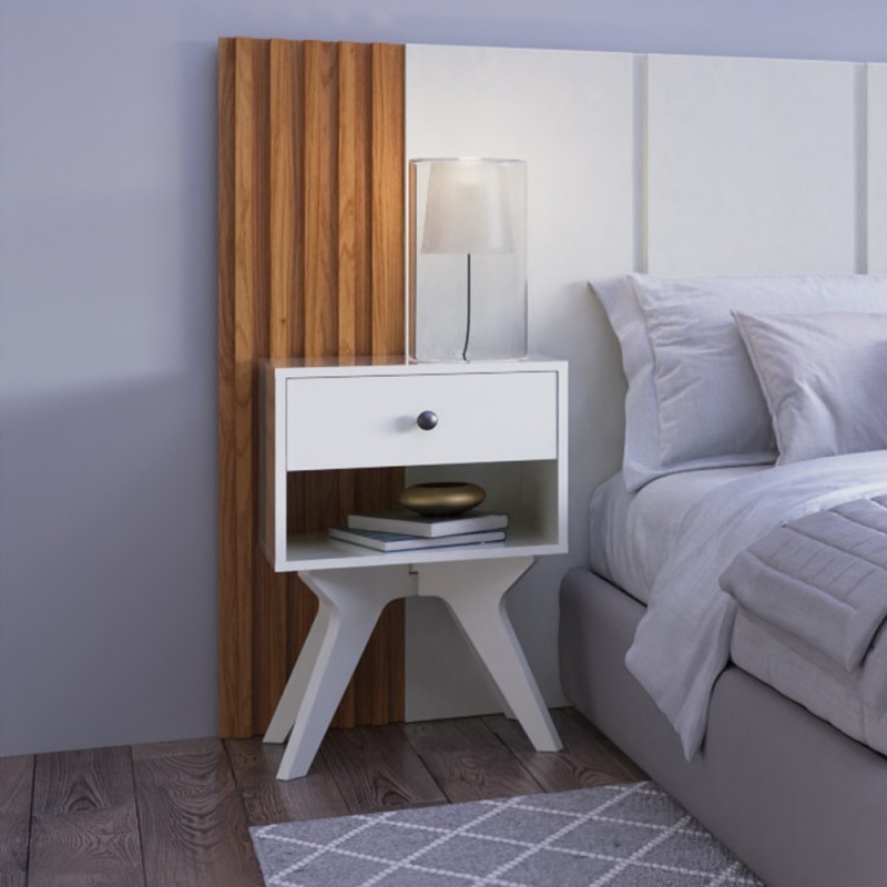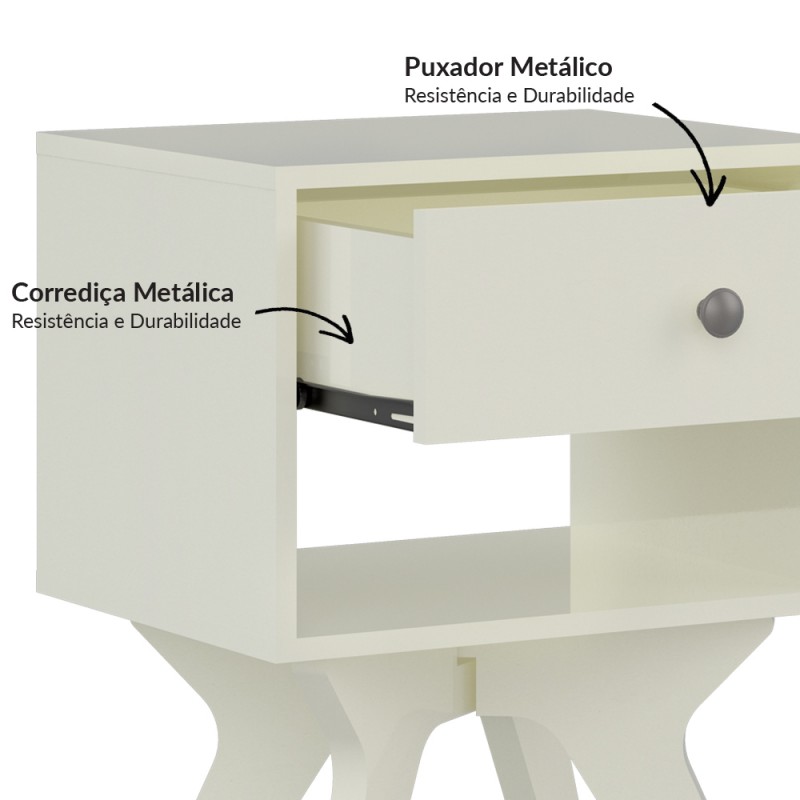 Mesa de Cabeceira 1 Gaveta Retrô Off White - Dalla Costa