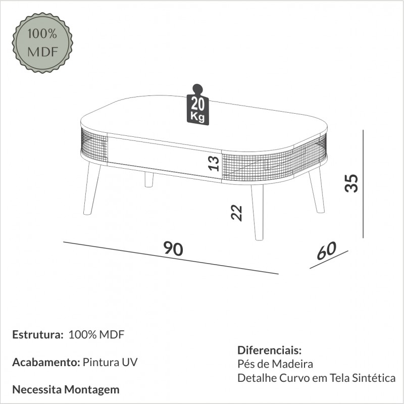 Desenvolvida com design atemporal e características únicas, a Mesa de Centro Curve TB340 é a combinação perfeita para uma sala de estar moderna e funcional.