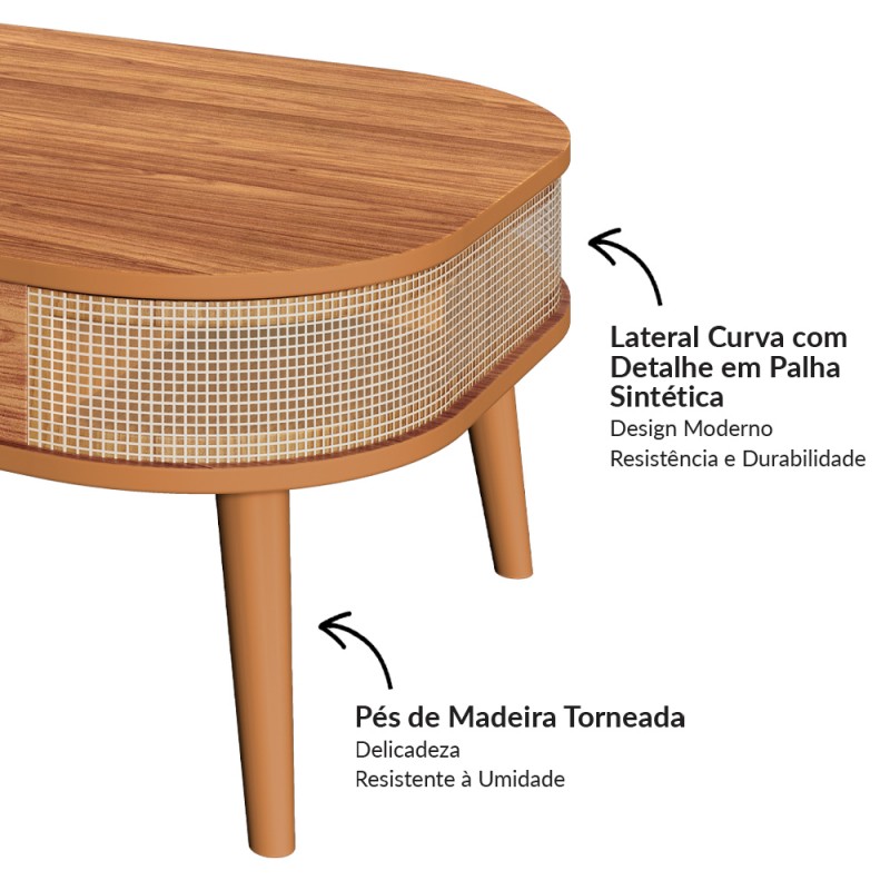 Bonita e versátil,é confeccionada em MDF com pintura de 6 camadas de proteção,possuindo detalhes laterais de palha sintética que fazemcom que se destaque em qualquer espaço.