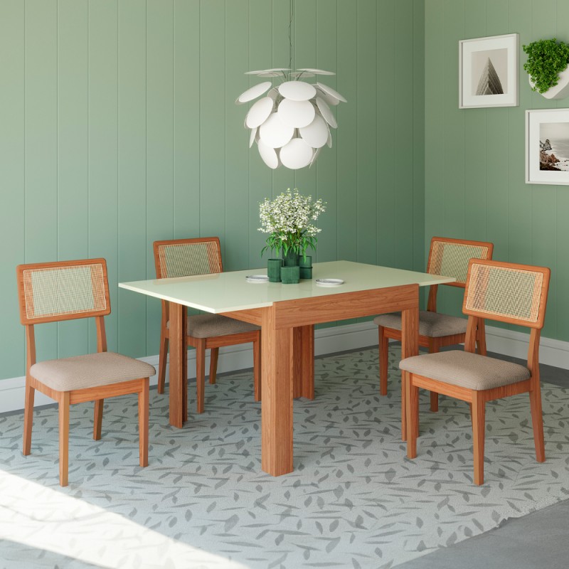 Mesa de Jantar Extensível 4 Lugares Basic Freijó/Off White - Dalla Costa