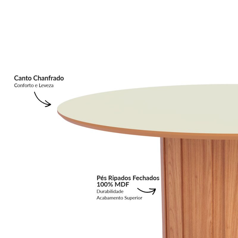 Elegante e versátil, a mesa de jantar TM73 tem pés ripados 100% MDF e tampo chanfradoque garante uma maior durabilidade.
