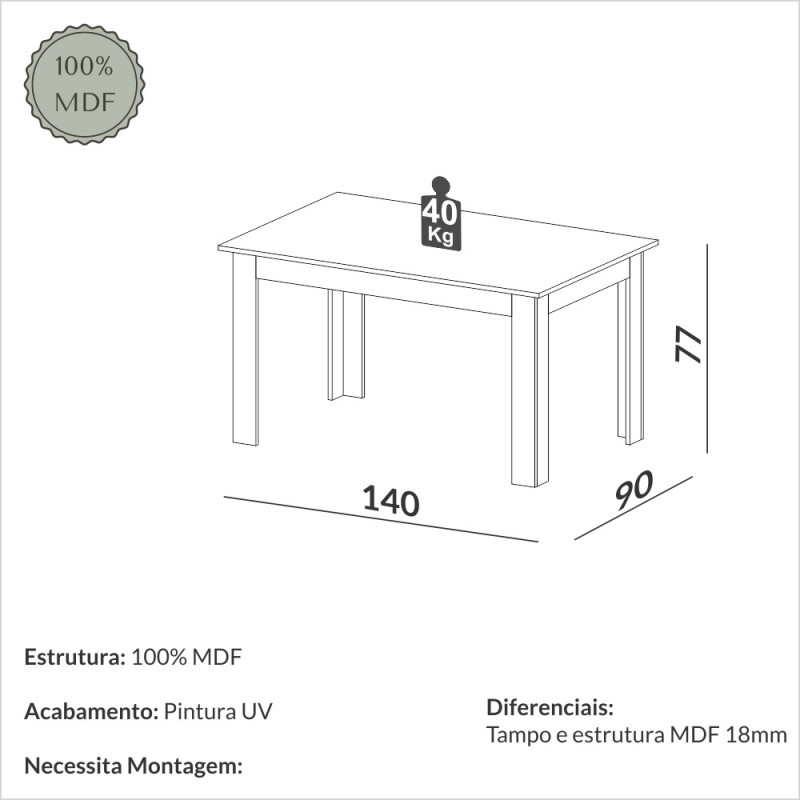 A compra do produto não acompanha montagem/desmontagem. Cadeiras e objetos decorativos não acompanham o produto. As cores dos objetos podem sofrer alterações devido à luminosidade, configurações do monitor e até mesmo a percepção do usuário. Imagens meramente ilustrativas.