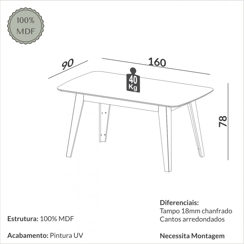 Ela acomoda até 4 lugares e é a combinação de um design atemporal com delicadeza e qualidade. Sua estrutura 100% MDF garante maior durabilidade para o produto. A alta qualidade do acabamento faz com que esse produto da Dalla Costa se destaque em qualquer espaço.