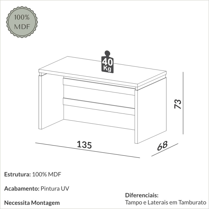 Com design moderno e atemporal, a Mesa de Trabalho TC145 é um item essencial para seu Home Office.