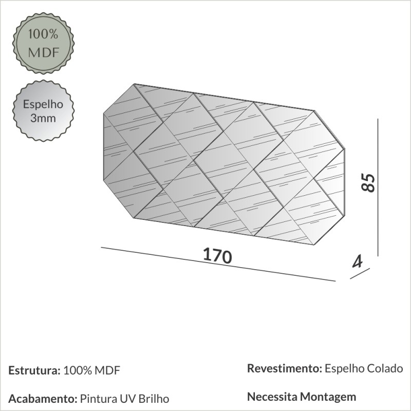 A peça é produzida 100% em MDF, com pintura de 6 camadas de proteção, o que confere alta qualidade de acabamento.Com proporções coringas, o espelho é destaque para qualquer ambiente e confere um design elegante para completar a decoração com exclusividade e personalidade.