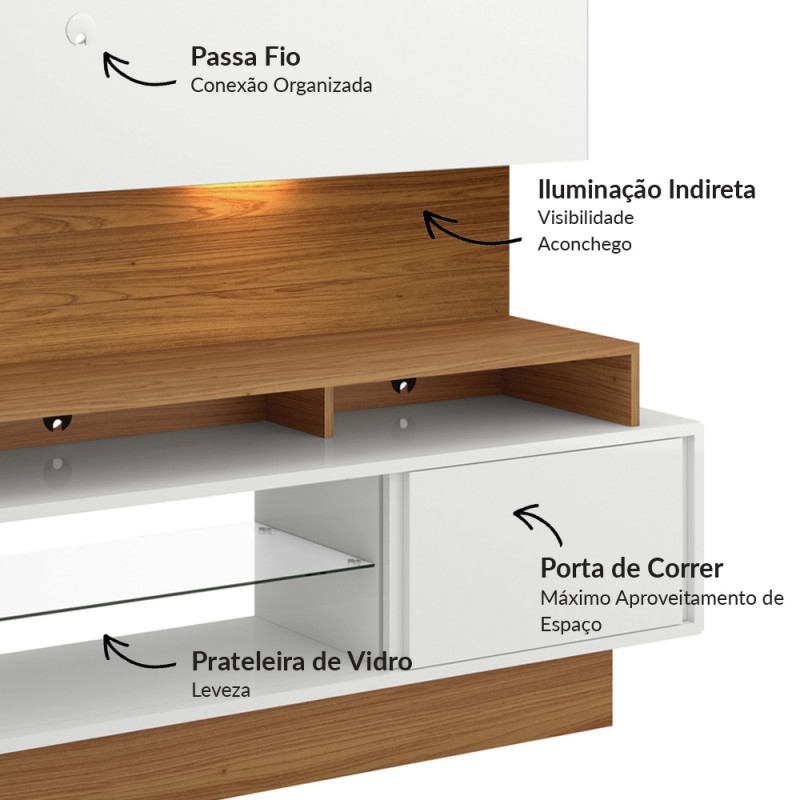 Esse produto já acompanha os suportes necessários para a fixação na parede e iluminação Led indireta no painel.
