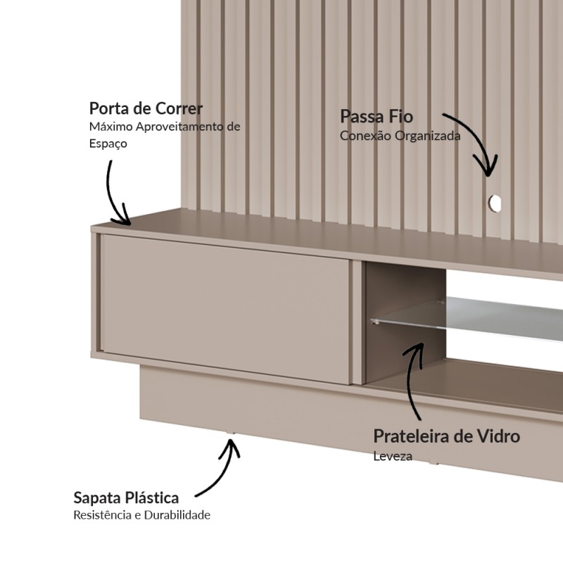 Esse produto 100% MDF possui prateleira de vidro temperado e 2 portas de correr.Bonito e versátil, esse painel suspenso acomoda uma TV de até 75 polegadas e tem design moderno. Com pintura de 6 camadas de proteção, a alta qualidade do acabamento faz com que esse produto da Dalla Costa se destaque em qualquer espaço.