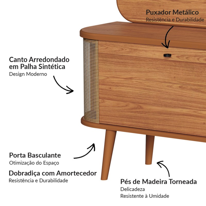 que possui duas portas basculantes com detalhe em palha sintética, pés em madeirae puxadores metálicos. Com pintura de 6 camadas de proteção, a alta qualidade do acabamento faz com que esse produto da Dalla Costa se destaque em qualquer espaço.