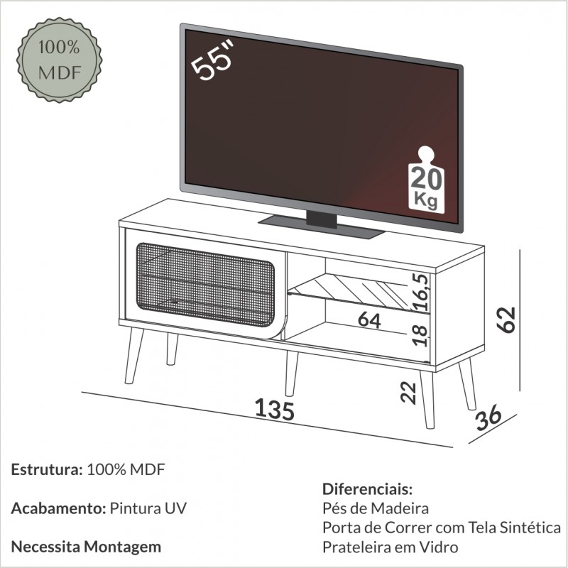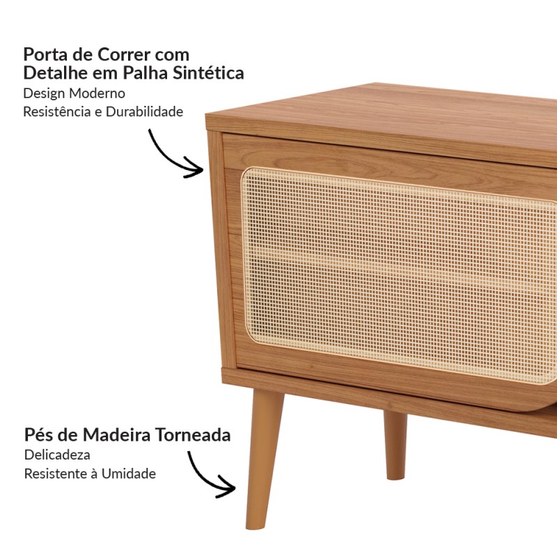 Esse produto 100% MDF possui pés de madeira e uma porta de correr com detalhe em palha sintética, que abre espaços de armazenamento ideais para consoles e decorações. Com pintura de 6 camadas de proteção, a alta qualidade do acabamento faz com que esse produto da Dalla Costa se destaque em qualquer espaço.