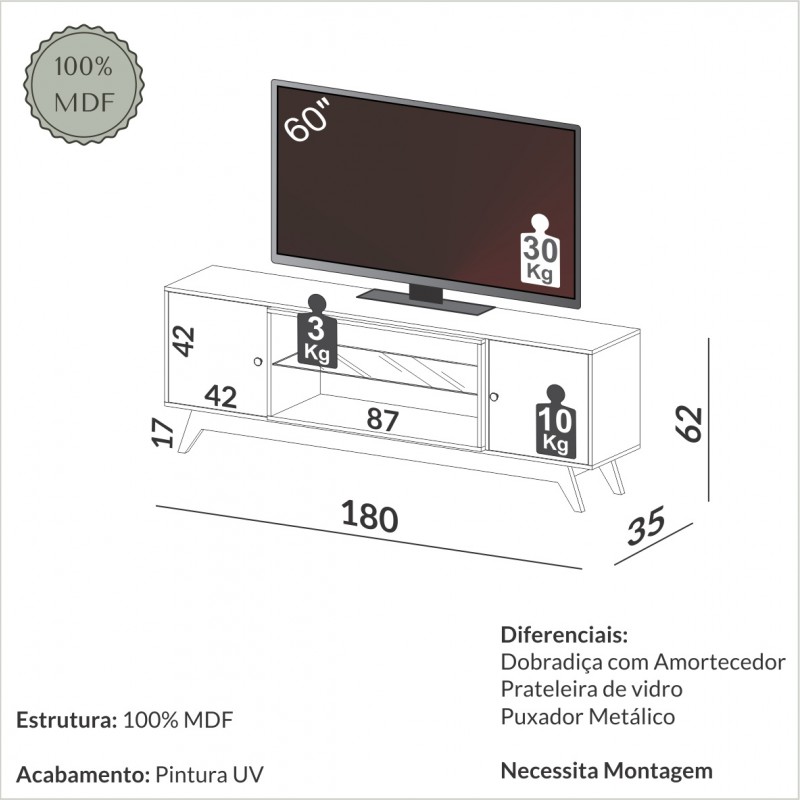 Esse produto 100% MDF possui prateleira de vidro temperado, puxador metálico e 2 portas. Com pintura de 6 camadas de proteção, a alta qualidade do acabamento faz com que esse produto da Dalla Costa se destaque em qualquer espaço.